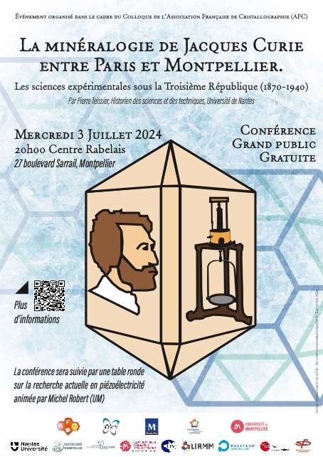 La conférence sera suivie par une Table Ronde sur la recherche et les applications actuelles de la piézo-électricité animée par des chercheurs de l’Université de Montpellier. La conférence grand public est organisée dans le cadre du colloque biennal de l’Association Française de Cristallographie qui a lieu au Corum du 2 au 5 juillet.